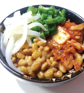 、 、いかそうめん、納豆を器に盛り、納豆に付いているタレorめんつゆをかけて混ぜて食べる。 |