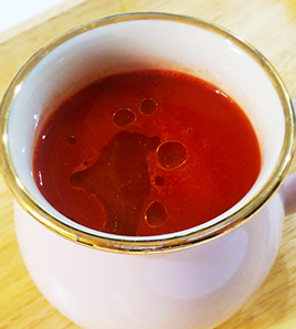 トマトジュースを耐熱容器のカップに入れ、ラップしてレンジ(600W)で1分程加熱する。 |