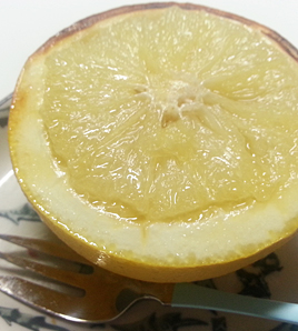 グレープフルーツに切り込みを入れておくとはちみつが全体になじみ、食べやすくなります。