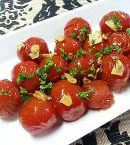 のトマトを器に盛り のにんにくとパセリを散らす。 |