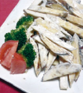 さつま芋をスティック状にカットし水にさらしてアクを抜く。 |