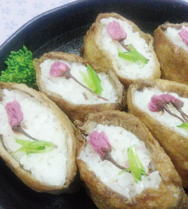 あげに をつめる。洗ってペーパーで水気をとった桜の塩漬けと、湯がいて刻んだ絹さやを飾る。![]() |