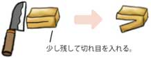 [2]厚揚げの端を残して、真ん中に切れ目を入れる。