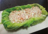 [3]型に白菜の葉をはみ出すように敷きつめ[2]を のせる(写真参照)。はみ出した葉でフタをする様に包む。