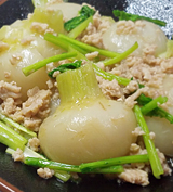 【冬】 かぶのそぼろ煮 1人あたり約135Kcal☆調理時間20分 |