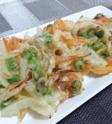 【夏】 枝豆と玉ねぎのかき揚げ 1人あたり約245Kcal☆調理時間20分 |