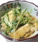 【冬】 水菜と油揚げのごま炒め 1人あたり約123Kcal☆調理時間5分 |