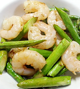 アスパラとエビの炒め物 1人あたり約120Kcal☆調理時間15分 |