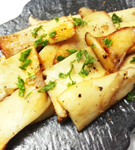 塩、黒こしょうをふり、エリンギがしんなりしたら皿に盛り、パセリをちらす。 |