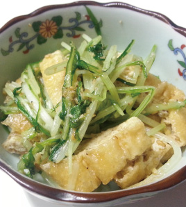 水菜は3~4cm位に、油揚げは適当な大きさに切る。 |