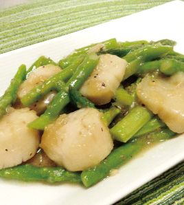 帆立とアスパラをバター醤油で炒めても美味しいです。