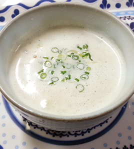 を鍋に戻し牛乳を加え温める。しょうゆ、こしょうで味を調える。 |